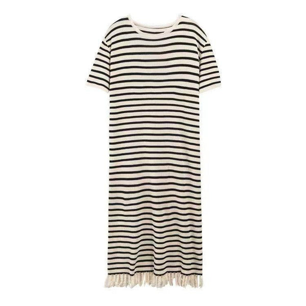 Abito a righe in maglia nera a maniche corte da donna Abito maxi