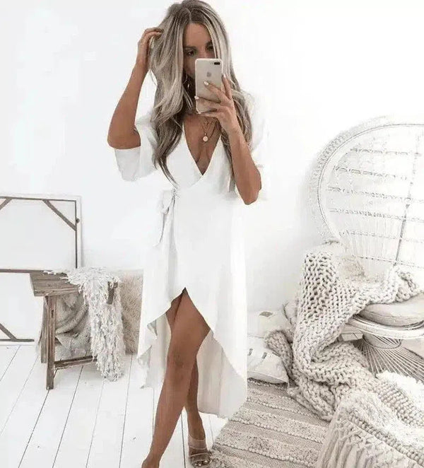 Abito a portafoglio con scollo a V e orlo asimmetrico