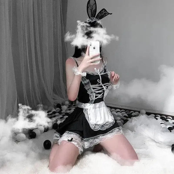 vestito da cameriera con orecchie da coniglio lingerie da cameriera