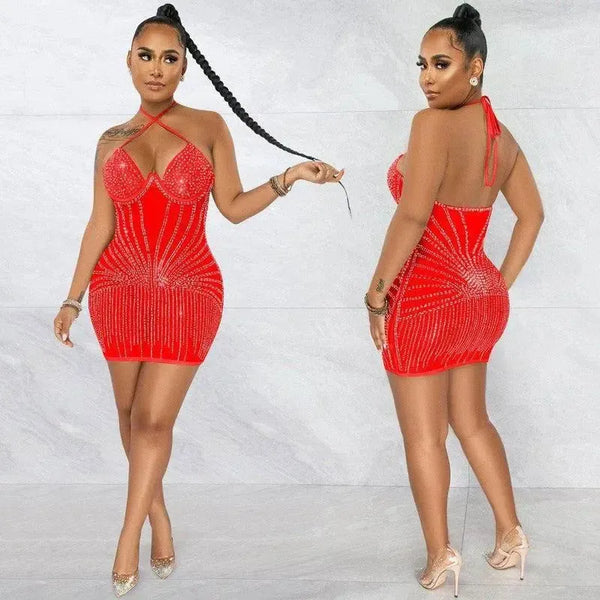 Fionda Avvolto petto strass Gonna prospettiva Dress