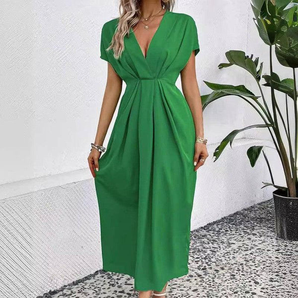 Solido Colore Profondo V Spalla Manica Pieghevole Vita Elastica