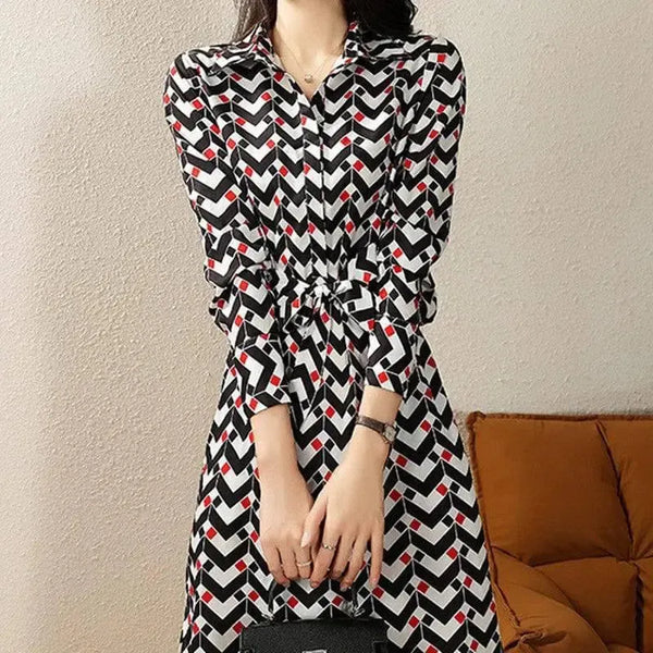 Abito stampato a maniche lunghe da donna in vita