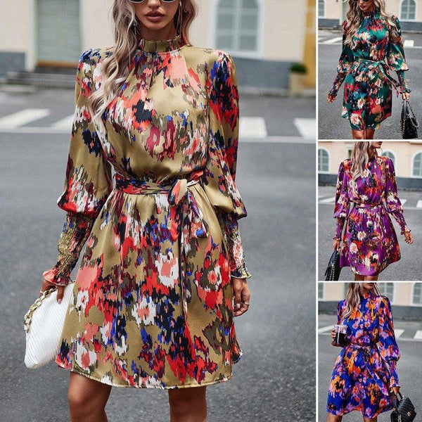 Abito stampato Autunno Abito elegante a maniche lunghe