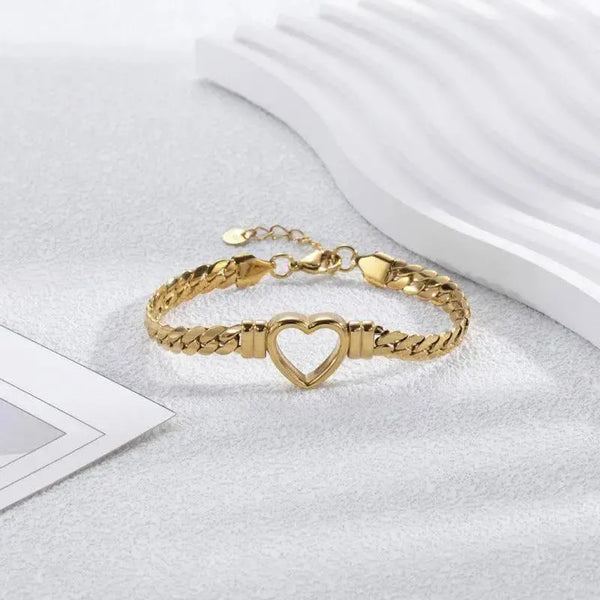 Moda semplice Cuore cavo Bracciale in acciaio al titanio