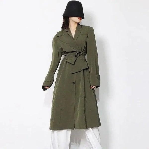 Cappotto lungo monopetto a pannelli irregolari con risvolto