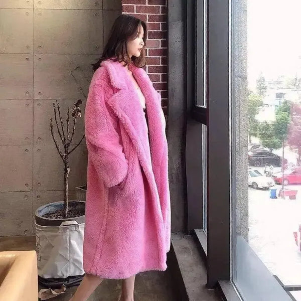 Cappotto lungo da donna in pelliccia e lana d'agnello