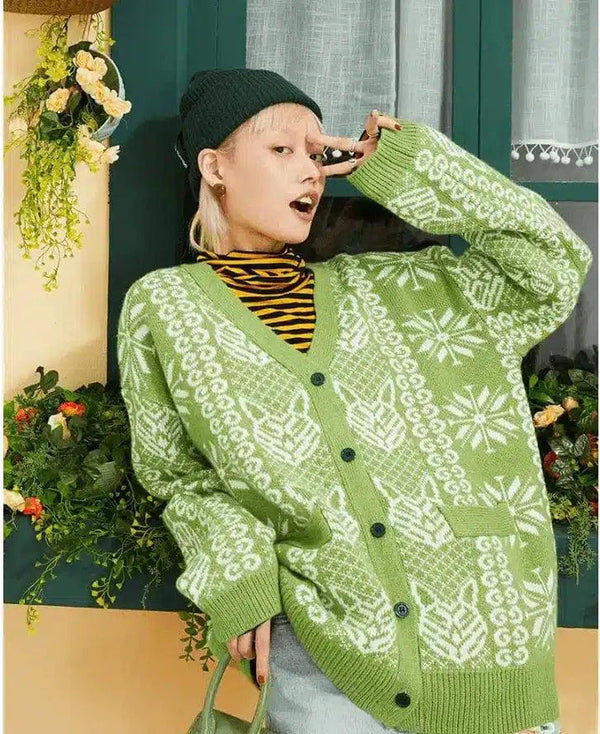 Cardigan in maglia a fantasia con chiusura a bottoni