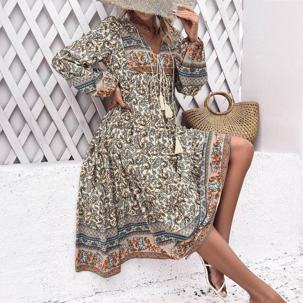 Moda donna Casual Holiday Manica lunga stampata Maxi