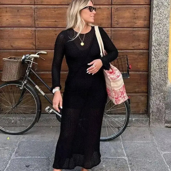 Moda Donna Temperamento Gonna Midi Colore Puro Vestito