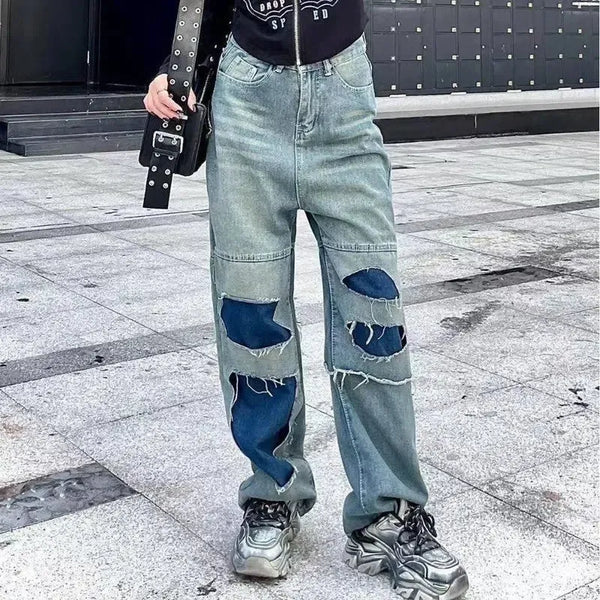 Descrizione del prodotto: Pantaloni dritti da donna strappati con cuciture dimagranti