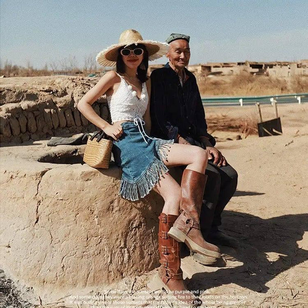 - Tecnica: Gonna di jeans da donna Dettagli: Presenta nappe di tendenza per un tocco di classe