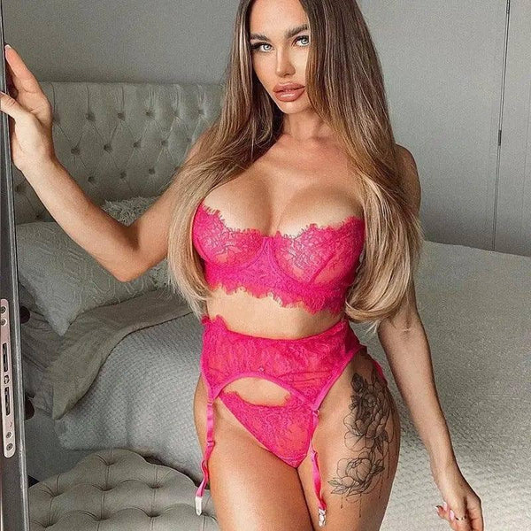 Lingerie femminile ricamata in pizzo e perle Tre