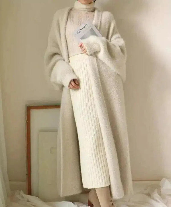 Cardigan donna a maglia lunga con abito dolcevita