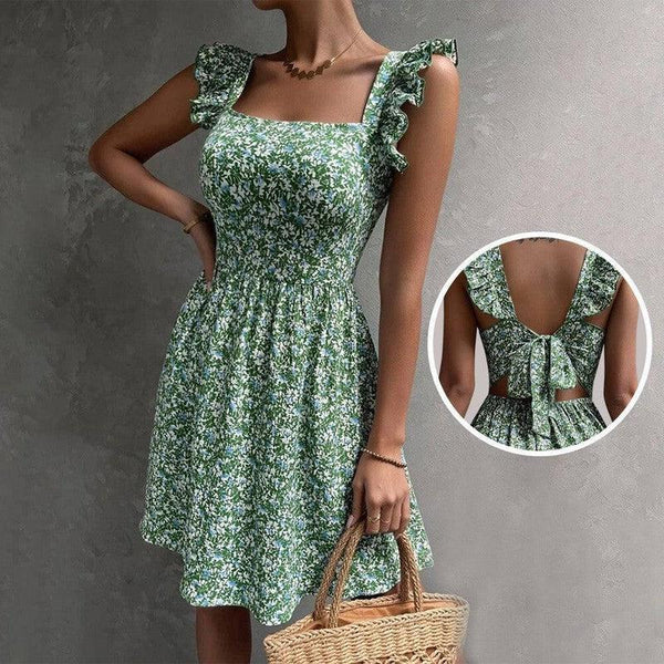Abito estivo senza maniche con scollo quadrato e volant con papillon