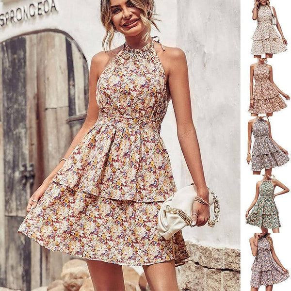 Abito estivo stampato con aletta Moda Boho senza spalline e increspato