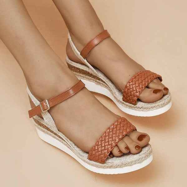 - Tipo di prodotto: Sandali con zeppa in lino intrecciato