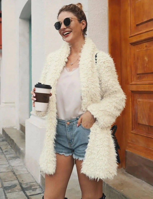 Giacca a maniche lunghe in pelliccia sintetica di media lunghezza