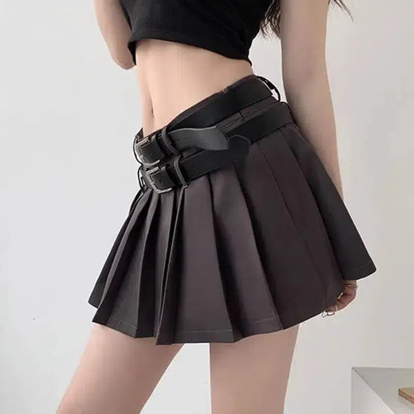 Gonna corta a pieghe con doppia fascia in vita e fodera