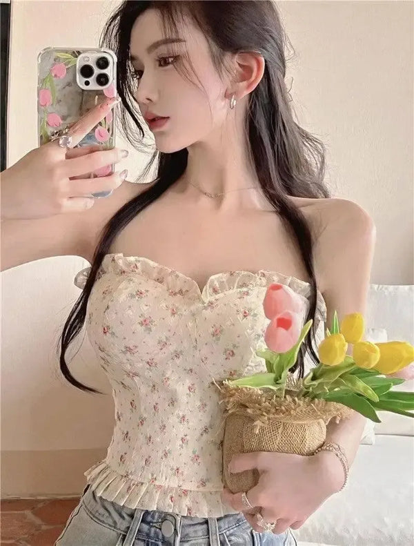 Ragazza calda floreale Lingerie tubo Top femmina Fishbone