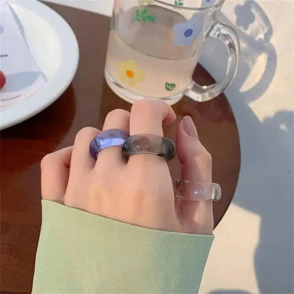 3pcs coreano geometrico resina anello ins rete rosso nuovo acrilico
