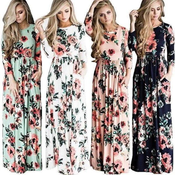 Abito floreale stampato a maniche lunghe