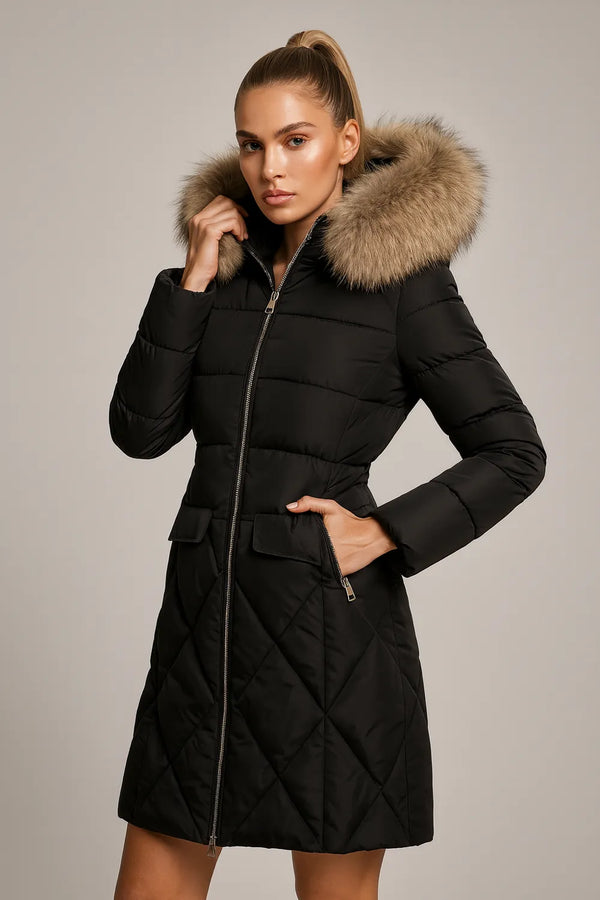 - Capospalla Stile scollatura/spalla: Cappuccio con bordo in pelliccia sintetica Fit/Stretch: Vestibilità rilassata con chiusura a zip