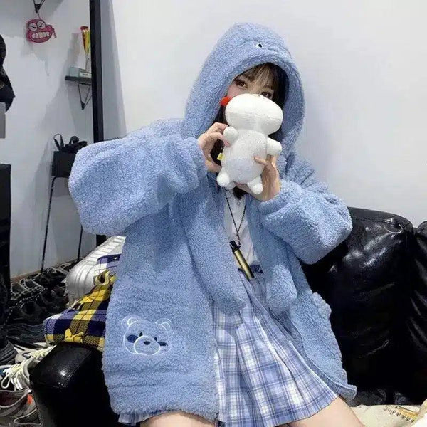 Orso Agnello Lana Cappotto Donne Inverno Peluche Sciolto Orecchie Peluche