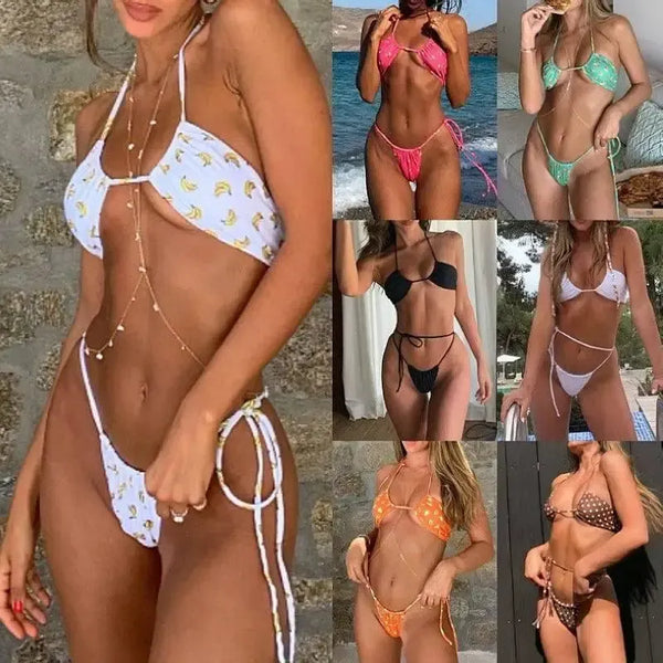 Bikini Colore Split Bikini Beach Vacation Backless Bikini