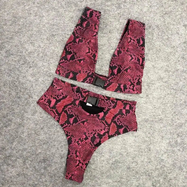 Bikini Europeo e Americano Costume da bagno con stampa serpente a vita alta
