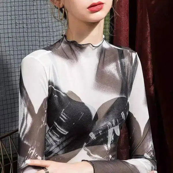Elementi audaci: L'audace motivo astratto abbinato al materiale velato crea un elemento tagliente ma di classe, rendendo questo top versatile sia per il giorno che per la sera.