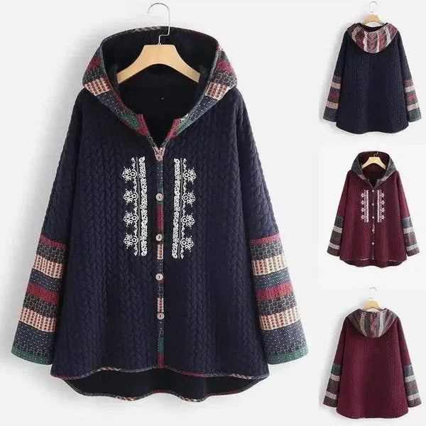- Lunghezza delle maniche: Maniche lunghe con dettaglio polsino a fantasia Scollatura o stile della spalla: Cappuccio con fodera interna a fantasia