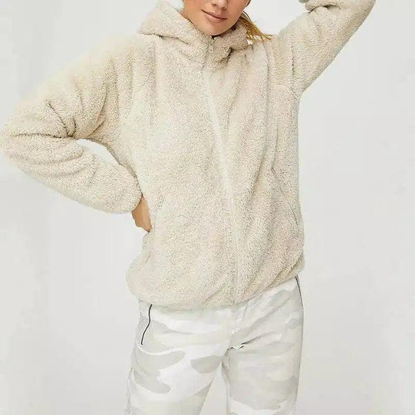 Felpa con cappuccio in pile casual a tinta unita a maniche lunghe