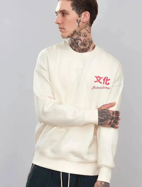 Maglione a collo tondo con stampa di caratteri cinesi