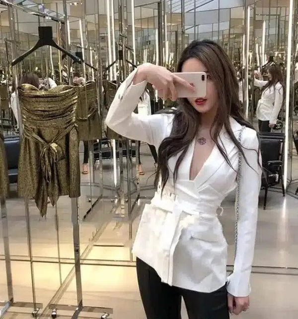 - Colore: Scollo a V Vestibilità: Vestibilità sartoriale con dettaglio cravatta in vita
