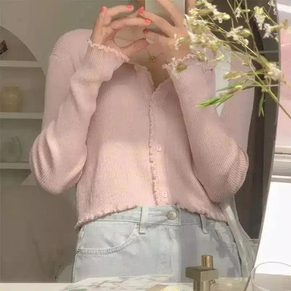 - Accattivante chiusura a bottoni: Delicati bottoni rivestono la parte anteriore del cardigan, offrendo funzionalità e un pizzico di fascino.
