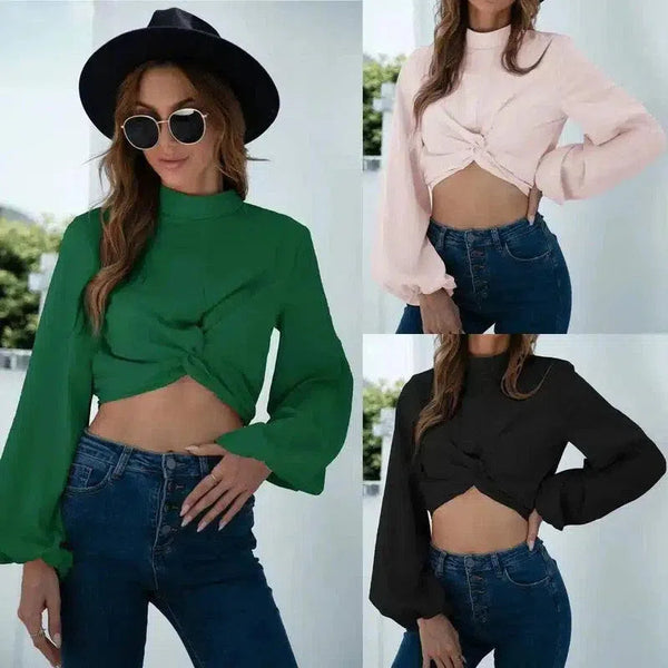 - Vestibilità: Maniche lunghe con polsini svasati . Vestibilità: Taglio corto e aderente con dettaglio di torsione frontale.