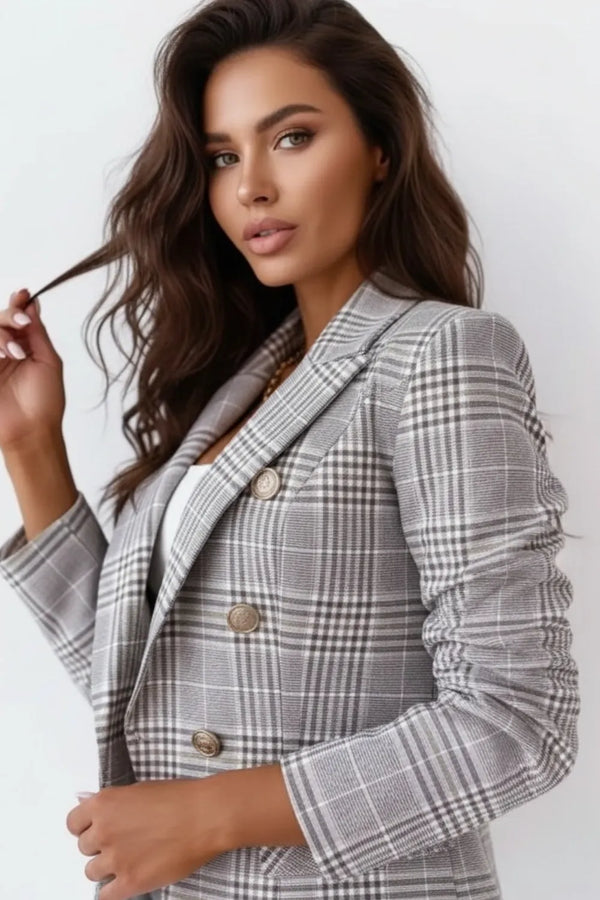 Donna Autunno Top Sciolto Manica Lunga Plaid Blazer