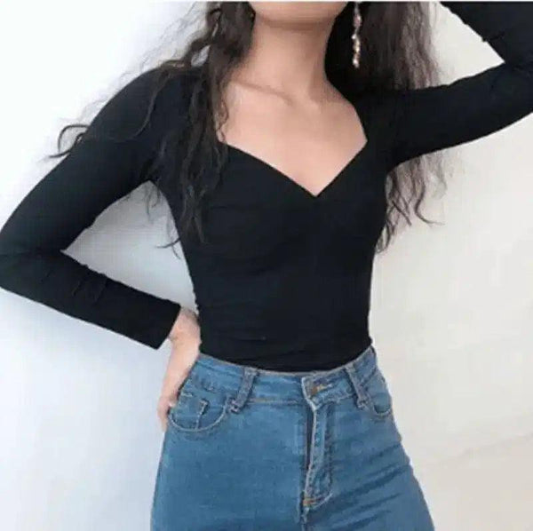 Top donna con scollo a V e manica lunga