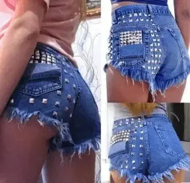 Jeans strappati da donna, pantaloncini larghi, pantaloni caldi con rivetti