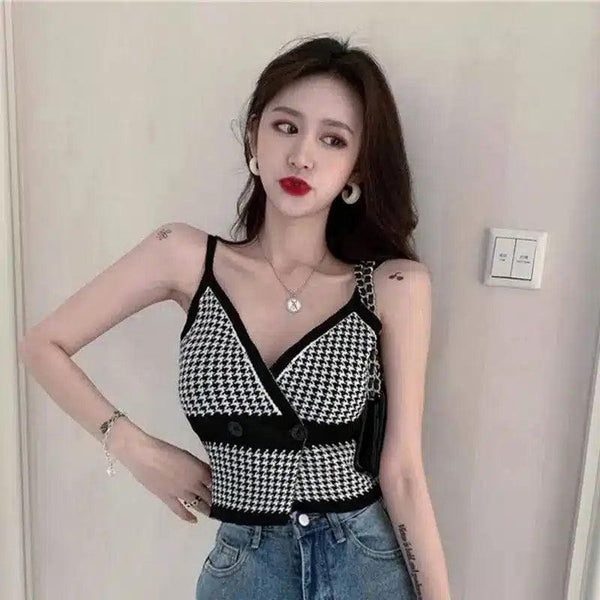 - Modello Modello: Stampa pied de poule con finiture nere a contrasto
