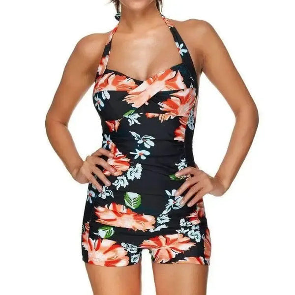 Costume da bagno estivo a pieghe con scollo a V da donna