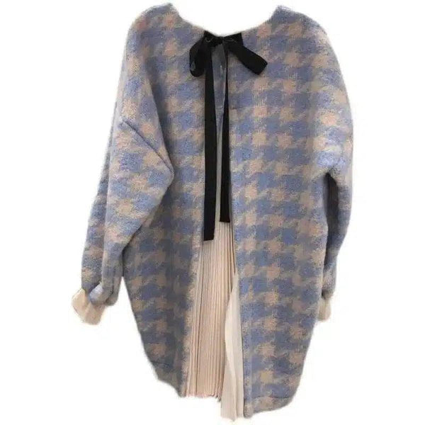 Moda plissettata Colore abbinato cuciture sciolto papillon pizzo