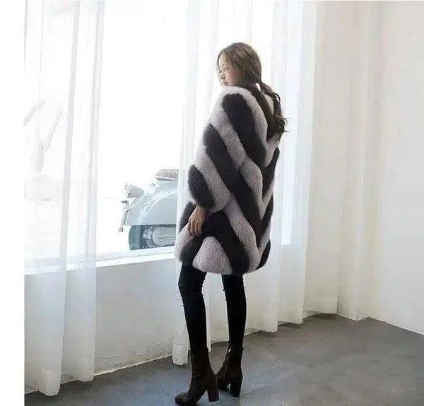 Cappotto a maniche lunghe in pelliccia sintetica a righe