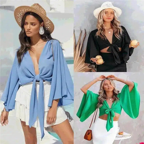 Crop Top donna con maniche larghe e chiusura a laccetto
