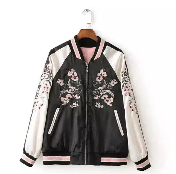 Bomber floreale ricamato con chiusura a zip