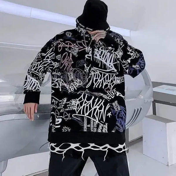 - Design: Design con cappuccio Design: Stampa audace ispirata ai graffiti per un look unico e urbano .