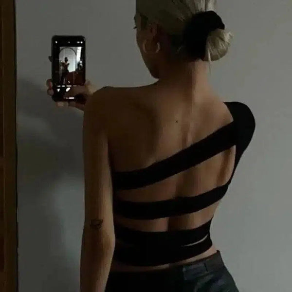 - Lunghezza delle maniche: senza maniche Scollatura o stile delle spalle: Spalline asimmetriche Fit o Stretch: Vestibilità aderente al corpo con dettagli di spalline orizzontali