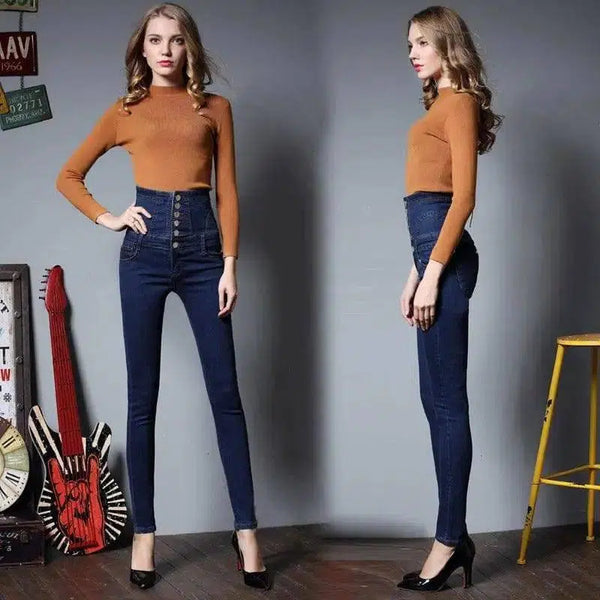 jeans a vita alta femminile sottile elastico piedi pantaloni a matita