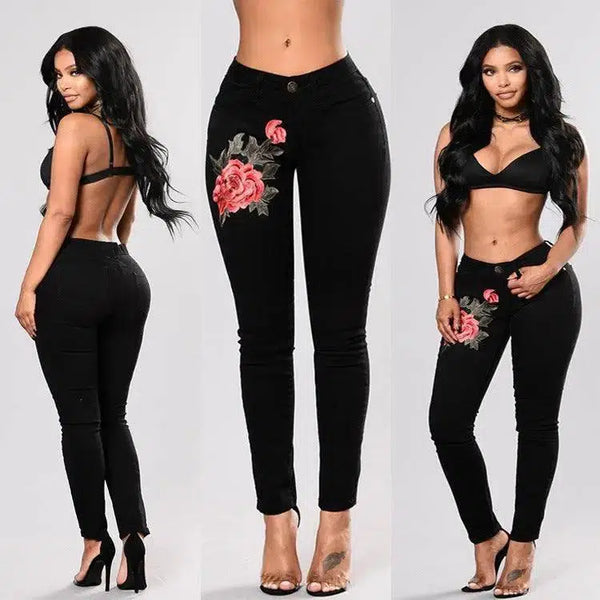 Jeans neri con piedini ricamati