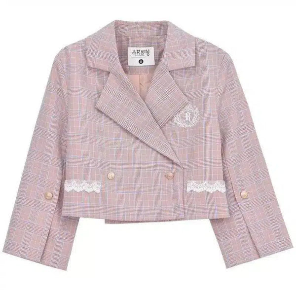 - Dettagli del design Dettagli del design: Chiusura a doppio petto, dettagli in pizzo sulle tasche, motivo a scacchi .